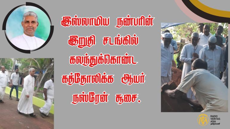 தனது இஸ்லாமிய நண்பரின் இறுதி சடங்கில் கலந்துக்கொண்ட கத்தோலிக்க ஆயர் நஸ்ரேன் சூசை. | Veritas Tamil